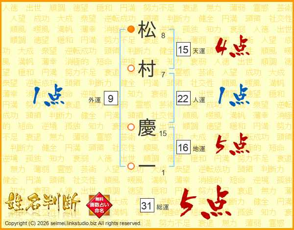 松村慶一さんの総運は31画の5点!