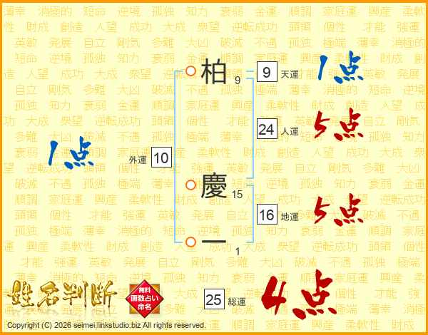 柏慶一さんの総運は25画の4点!
