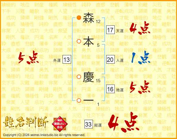 森本慶一さんの総運は33画の4点!