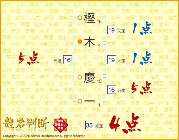 樫(15画)木(4画) 慶(15画)一(1画)