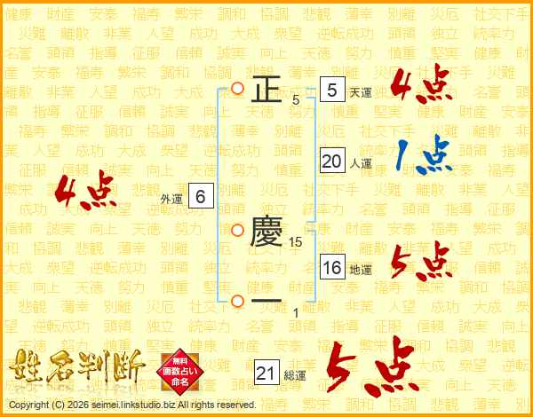 正(5画) 慶(15画)一(1画)