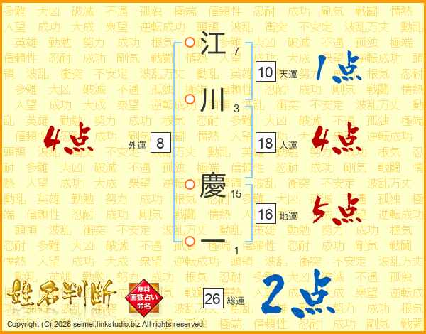 江川慶一さんの総運は26画の2点!