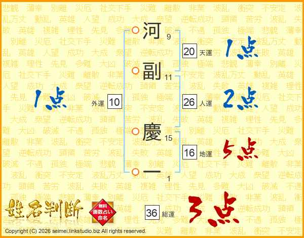 河副慶一さんの人運は26画の2点!