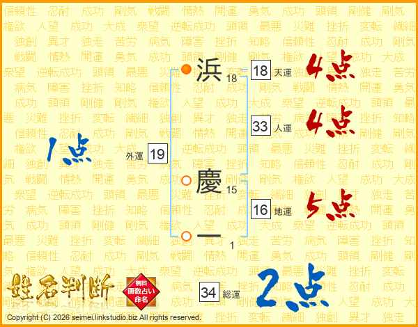 浜慶一さんの総運は34画の2点!