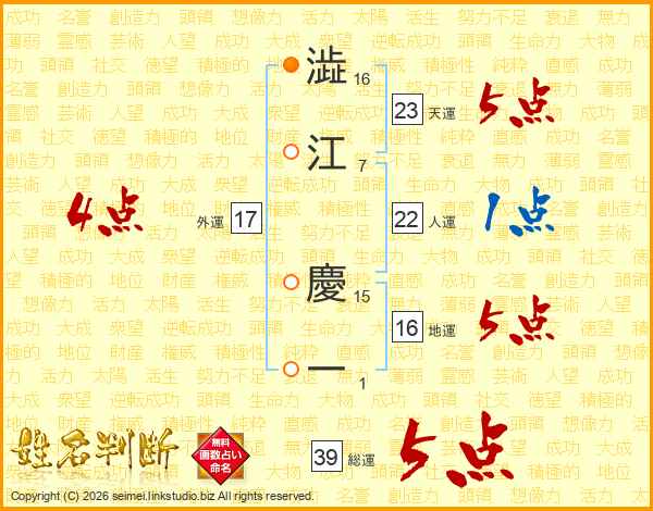 澁江慶一さんの総運は39画の5点!
