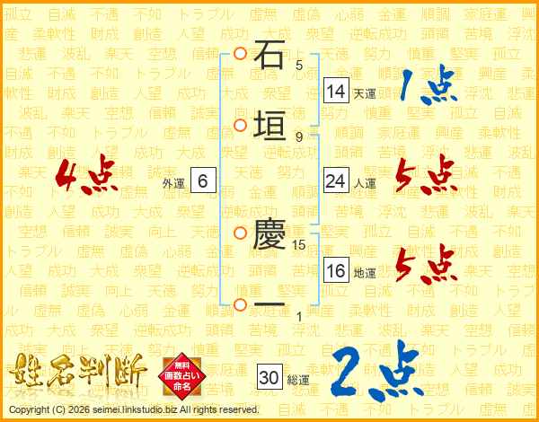石垣慶一さんの人運は24画の5点!
