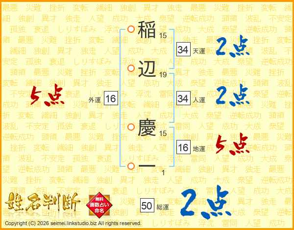 稲辺慶一さんの総運は50画の2点!
