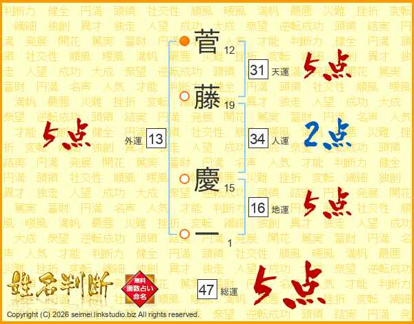 菅藤慶一さんの総運は47画の5点!