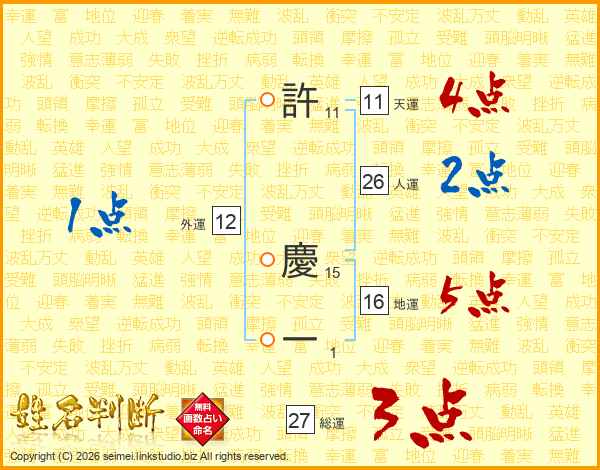 許慶一さんの人運は26画の2点!