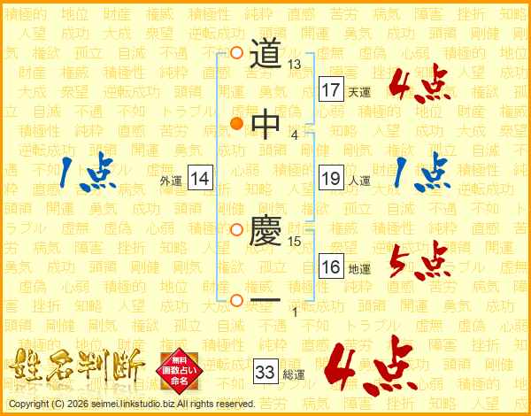 道中慶一さんの総運は33画の4点!