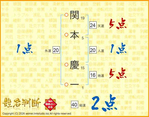 関本慶一さんの人運は20画の1点!