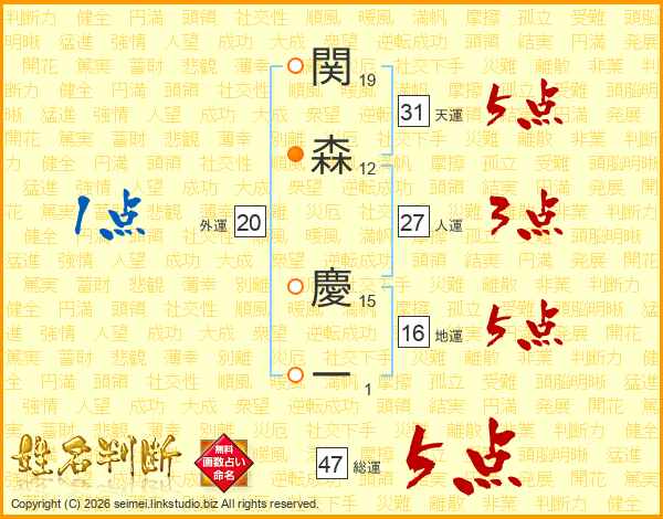 関森慶一さんの総運は47画の5点!