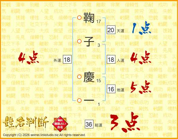 鞠子慶一さんの総運は36画の3点!