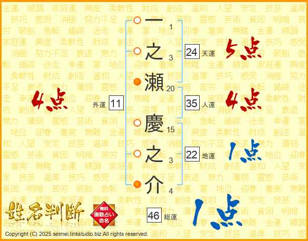 一(1画)之(3画)瀬(20画) 慶(15画)之(3画)介(4画)