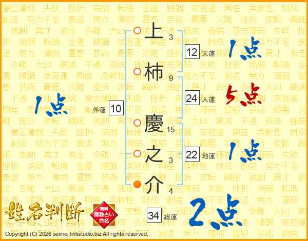 上(3画)柿(9画) 慶(15画)之(3画)介(4画)