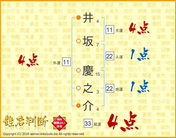 井坂慶之介さんの総運は33画の4点!