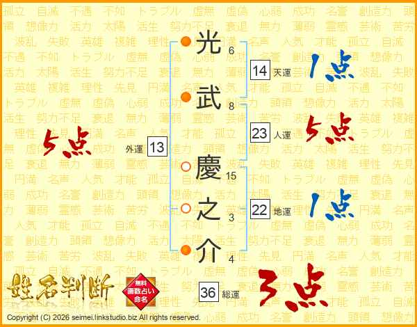 光武慶之介さんの人運は23画の5点!