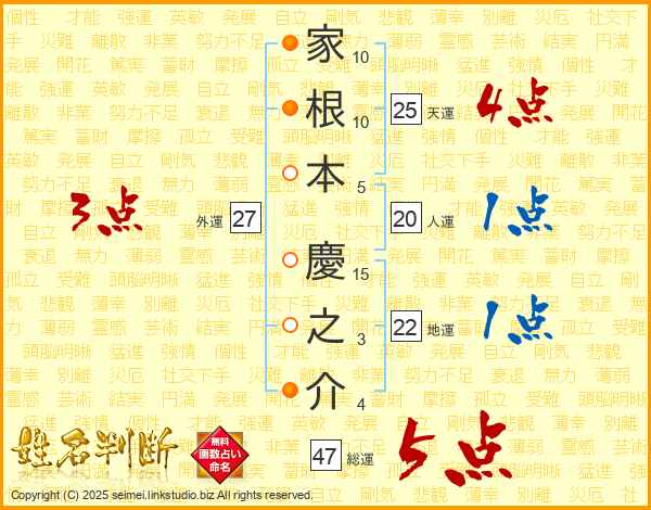 家根本慶之介さんの総運は47画の5点!