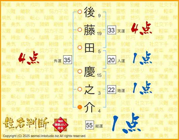 後藤田慶之介さんの天運は33画の4点!