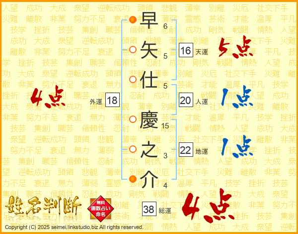 早(6画)矢(5画)仕(5画) 慶(15画)之(3画)介(4画)