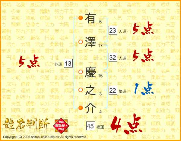 有(6画)澤(17画) 慶(15画)之(3画)介(4画)