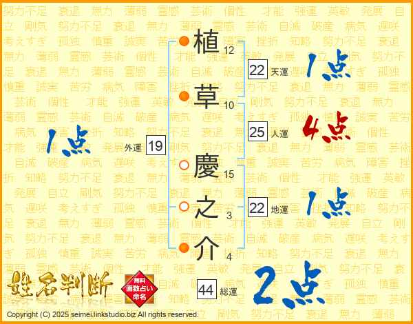 植(12画)草(10画) 慶(15画)之(3画)介(4画)