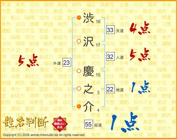 渋沢慶之介さんの総運は55画の1点!