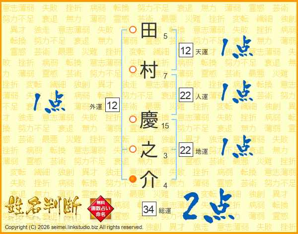 田村慶之介さんの総運は34画の2点!