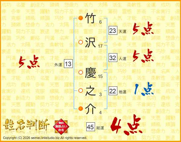 竹沢慶之介さんの総運は45画の4点!