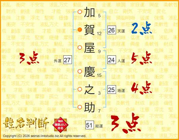 加賀屋慶之助さんの天運は26画の2点!