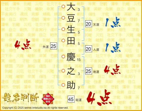 大豆生田慶之助さんの総運は45画の4点!