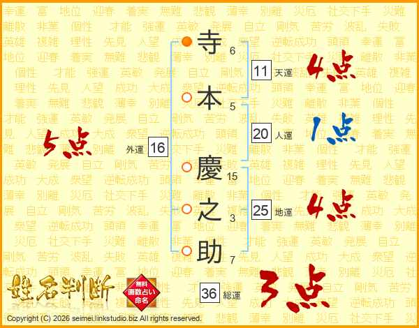 寺(6画)本(5画) 慶(15画)之(3画)助(7画)