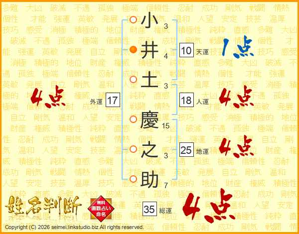 小(3画)井(4画)土(3画) 慶(15画)之(3画)助(7画)