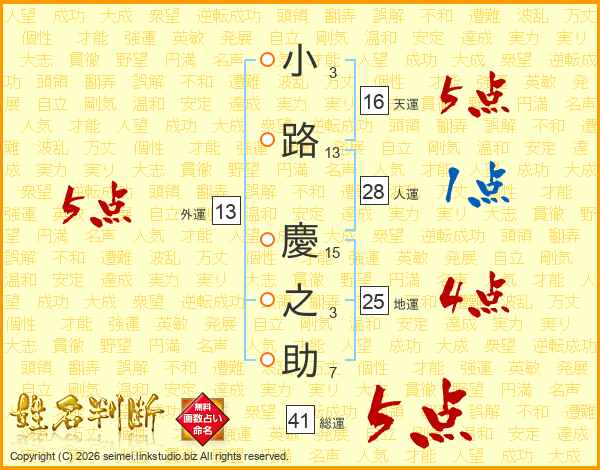 小路慶之助さんの総運は41画の5点!
