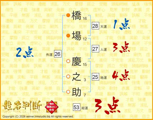 橋場慶之助さんの人運は27画の3点!