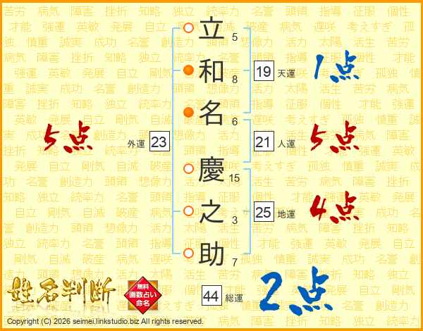 立和名慶之助さんの総運は44画の2点!