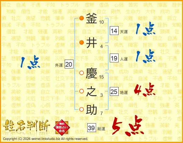 釜(10画)井(4画) 慶(15画)之(3画)助(7画)