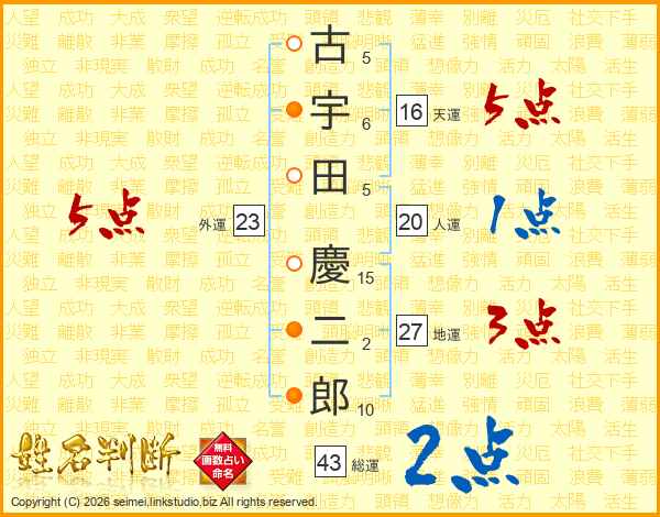 古宇田慶二郎さんの総運は43画の2点!