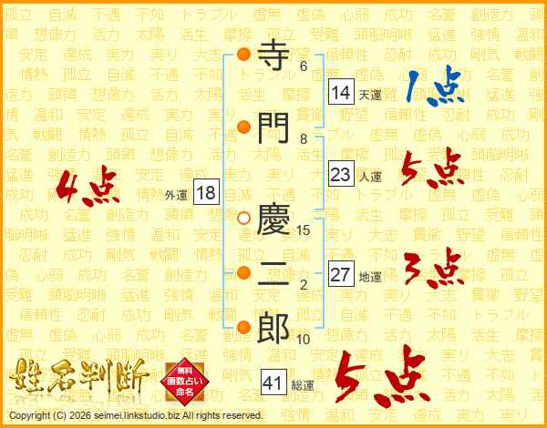 寺(6画)門(8画) 慶(15画)二(2画)郎(10画)