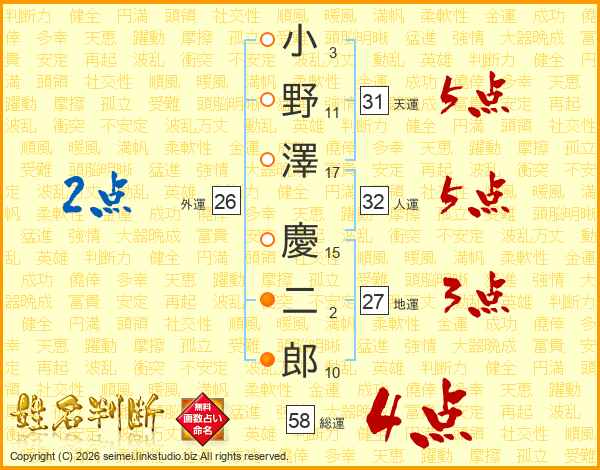 小野澤慶二郎さんの総運は58画の4点!