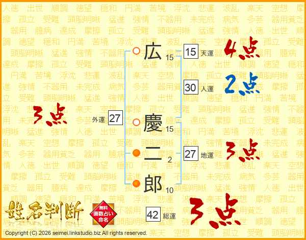 広慶二郎さんの総運は42画の3点!