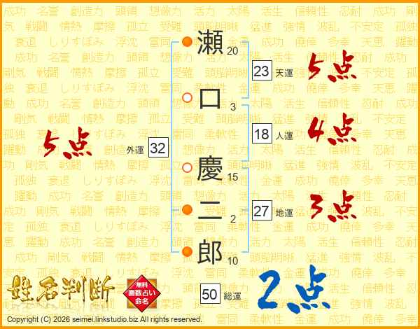 瀬口慶二郎さんの天運は23画の5点!