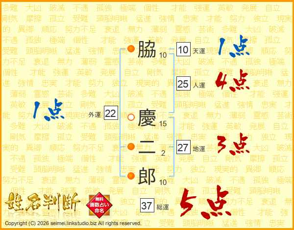 脇慶二郎さんの総運は37画の5点!