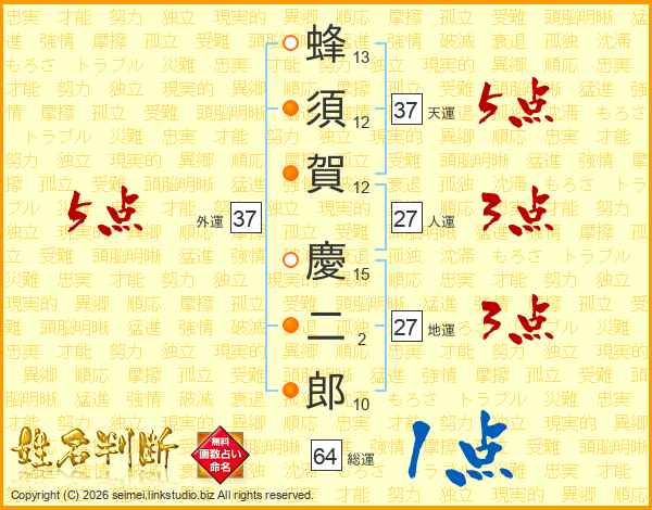 蜂須賀慶二郎さんの外運は37画の5点!