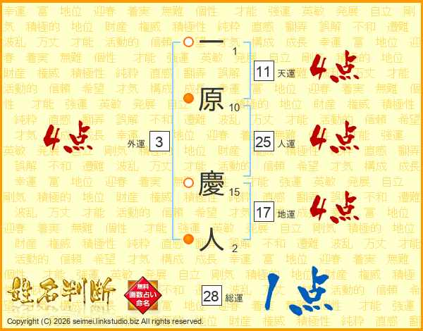 一原慶人さんの人運は25画の4点!