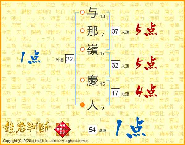 与那嶺慶人さんの総運は54画の1点!