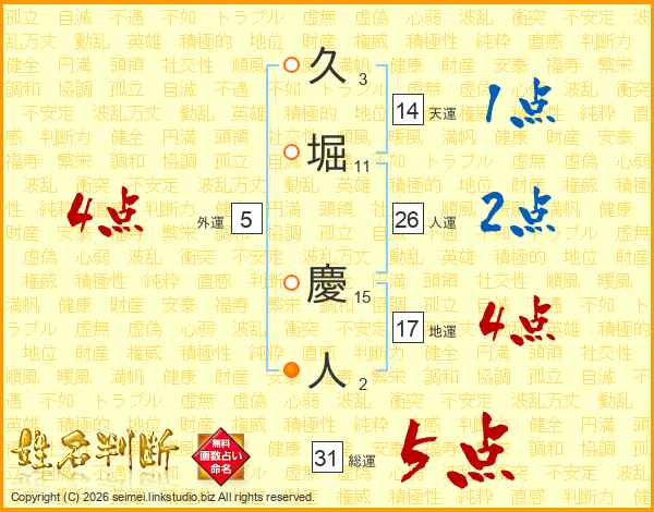 久堀慶人さんの総運は31画の5点!