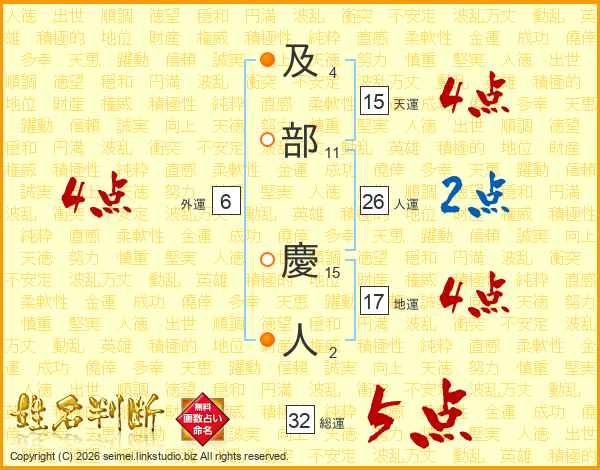 及部慶人さんの総運は32画の5点!