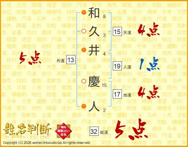 和(8画)久(3画)井(4画) 慶(15画)人(2画)