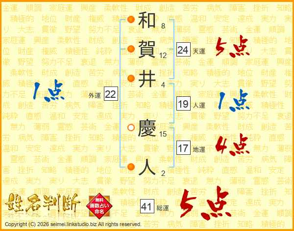 和賀井慶人さんの天運は24画の5点!